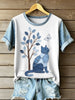 Damska koszulka z krótkim rękawem retro cat patchwork print casual