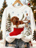 Damska świąteczna urocza i zabawna flanelowa bluza z kapturem ze wzorem psa