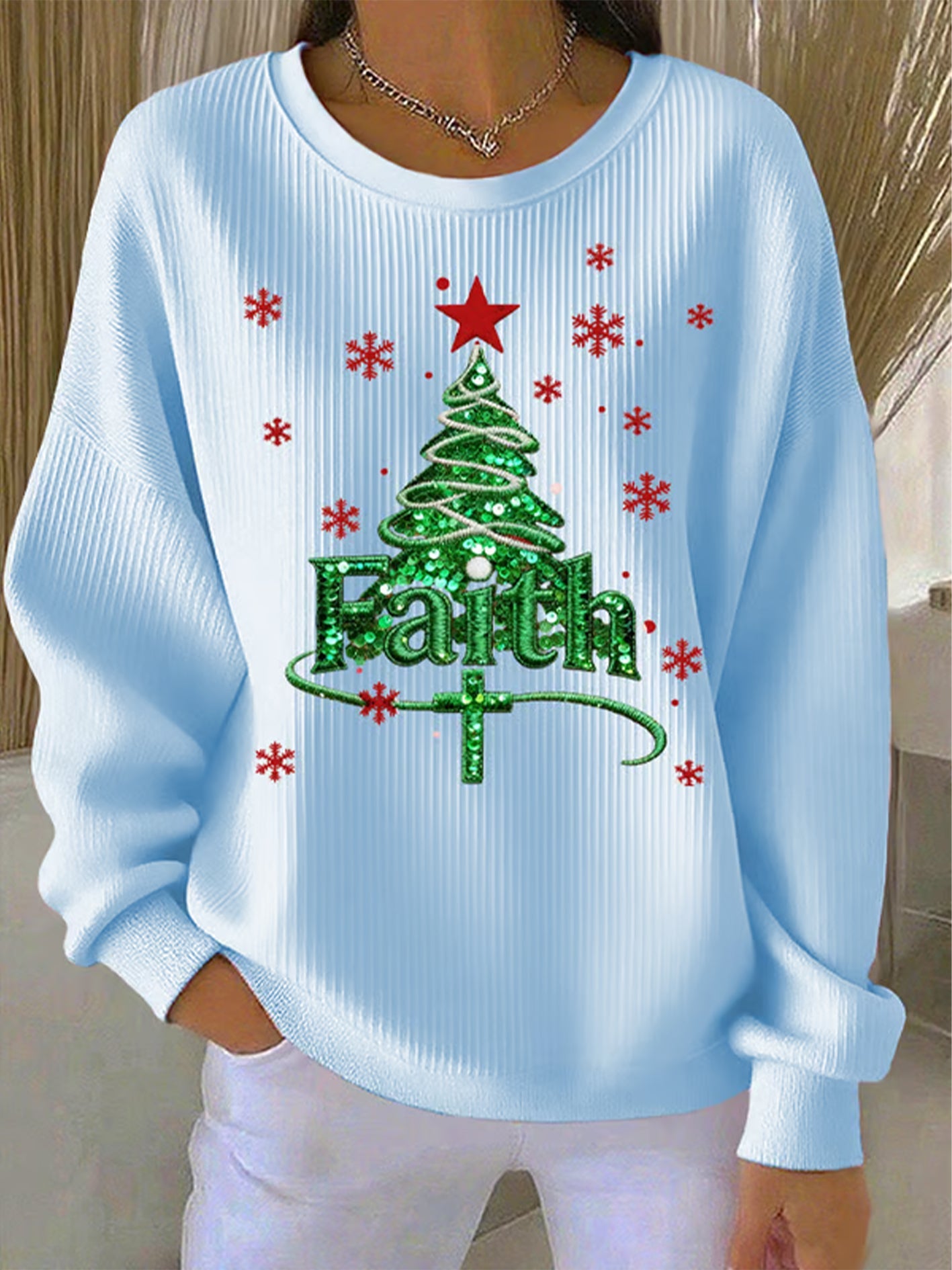 Damska świąteczna wiara z nadrukiem swobodnej bluzy