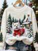 Damskie Retro Animal Boże Narodzenie Art Print Casual Top flanelowy
