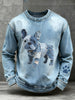 Męska bluza z denimowym patchworkiem w stylu buldoga francuskiego