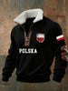 Męska bluza z polarowym kołnierzem z nadrukiem w stylu vintage