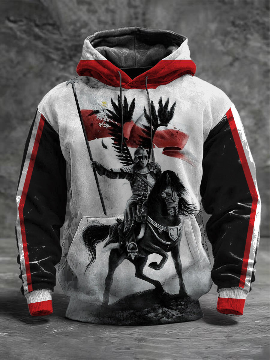 Męska dramatyczna bluza z kapturem z kapturem w kolorze polskim skrzydconym husar