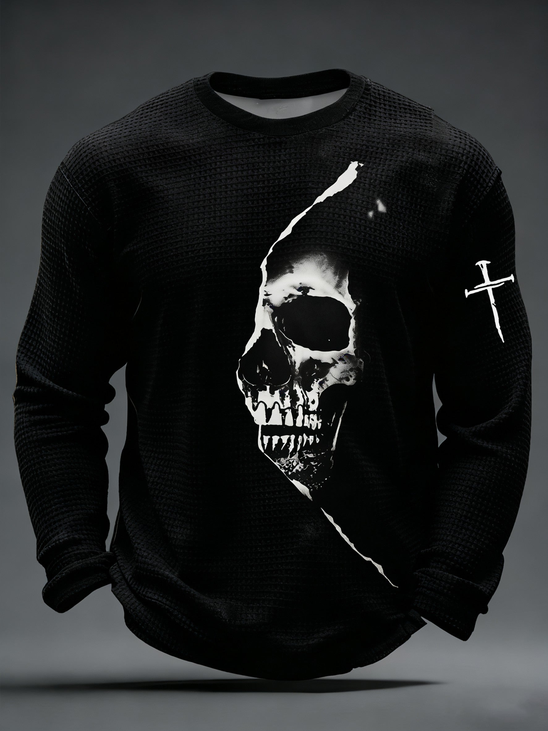 Męska koszulka z długim rękawem w stylu vintage czaszka Faith Cross Waffle