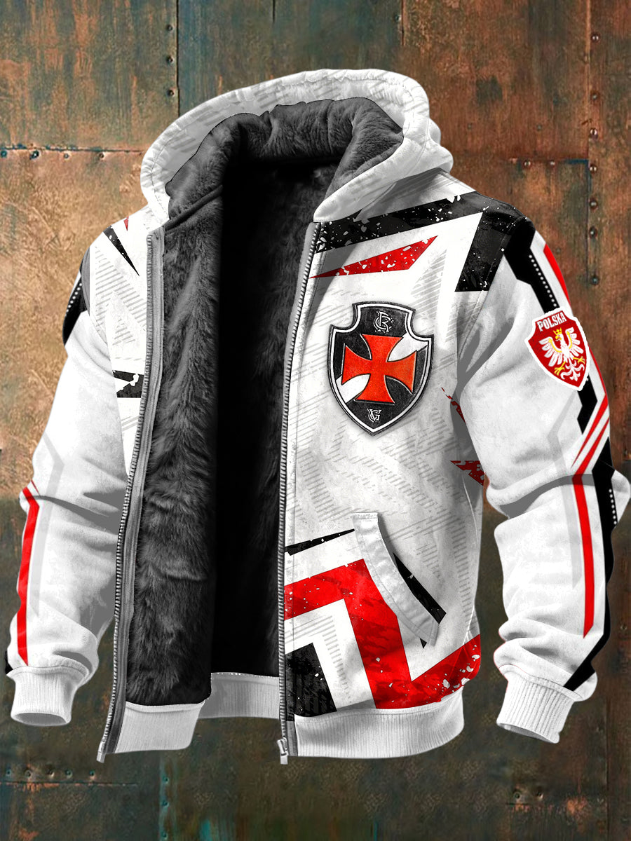 Męska kurtka z polarowym nadrukiem w stylu motocyklowym z polskim krzyżem