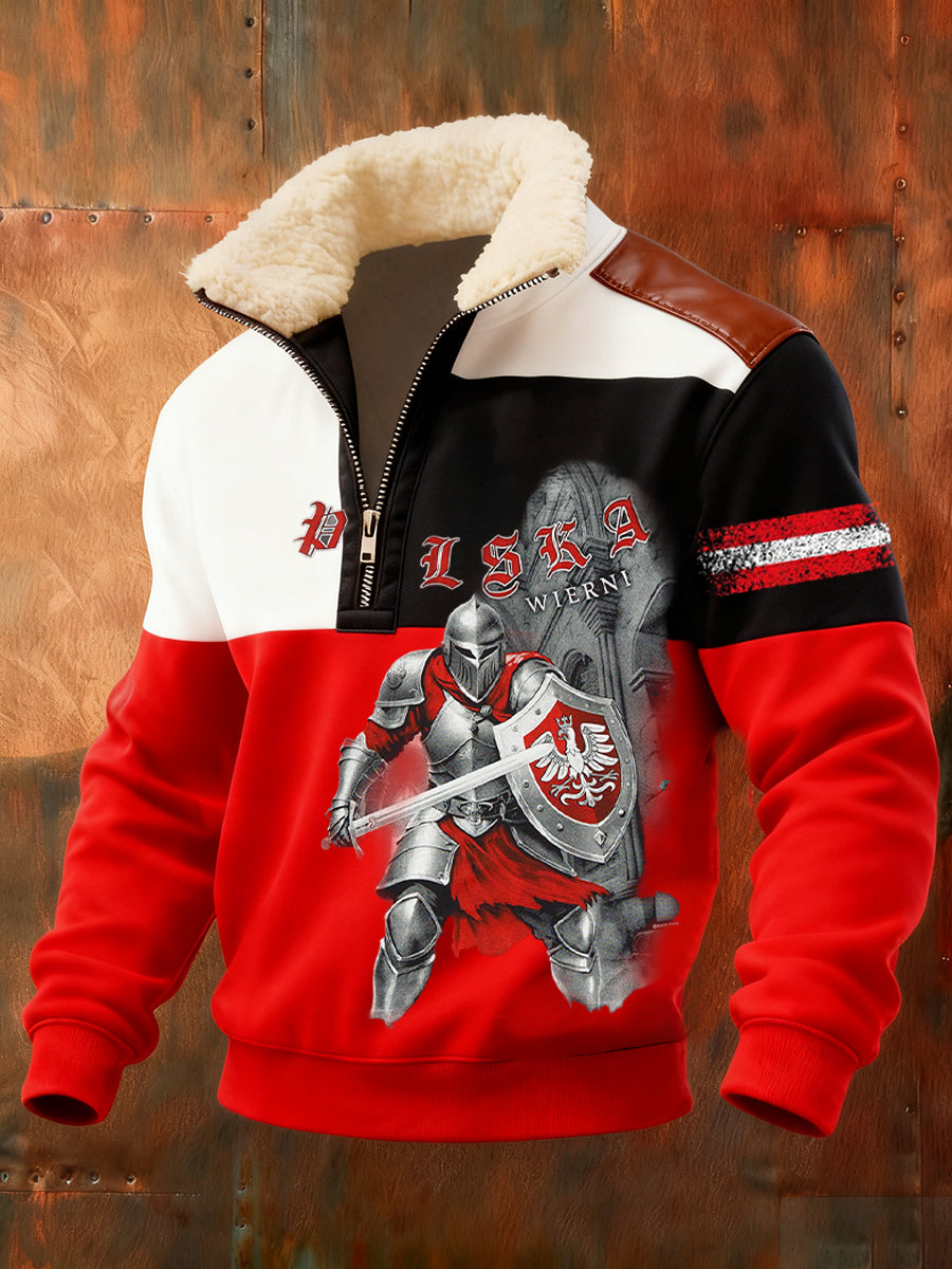 Męska polska sztuka retro casualowa gruba futrzana bluza z kołnierzem