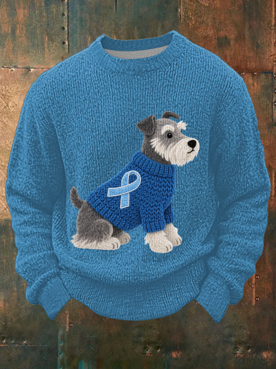 Męska sztuka filcowa Sznaucer Pies wzór Przytulny top z dzianiny