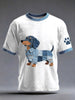 Męski jeansowy patchwork art jamnik pies wzór umyty T-Shirt