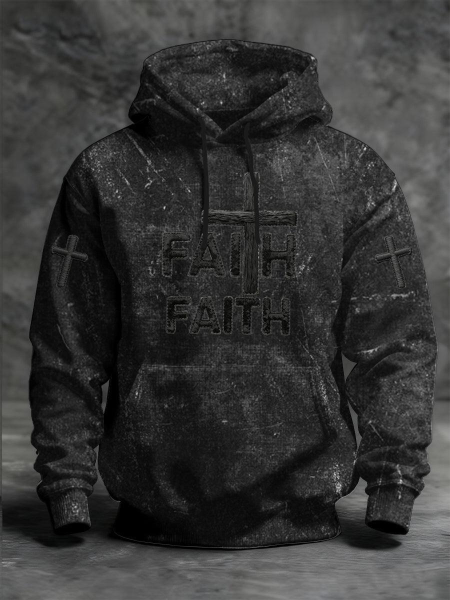 Męskie Vintage Faith Casual Luźna bluza z kapturem
