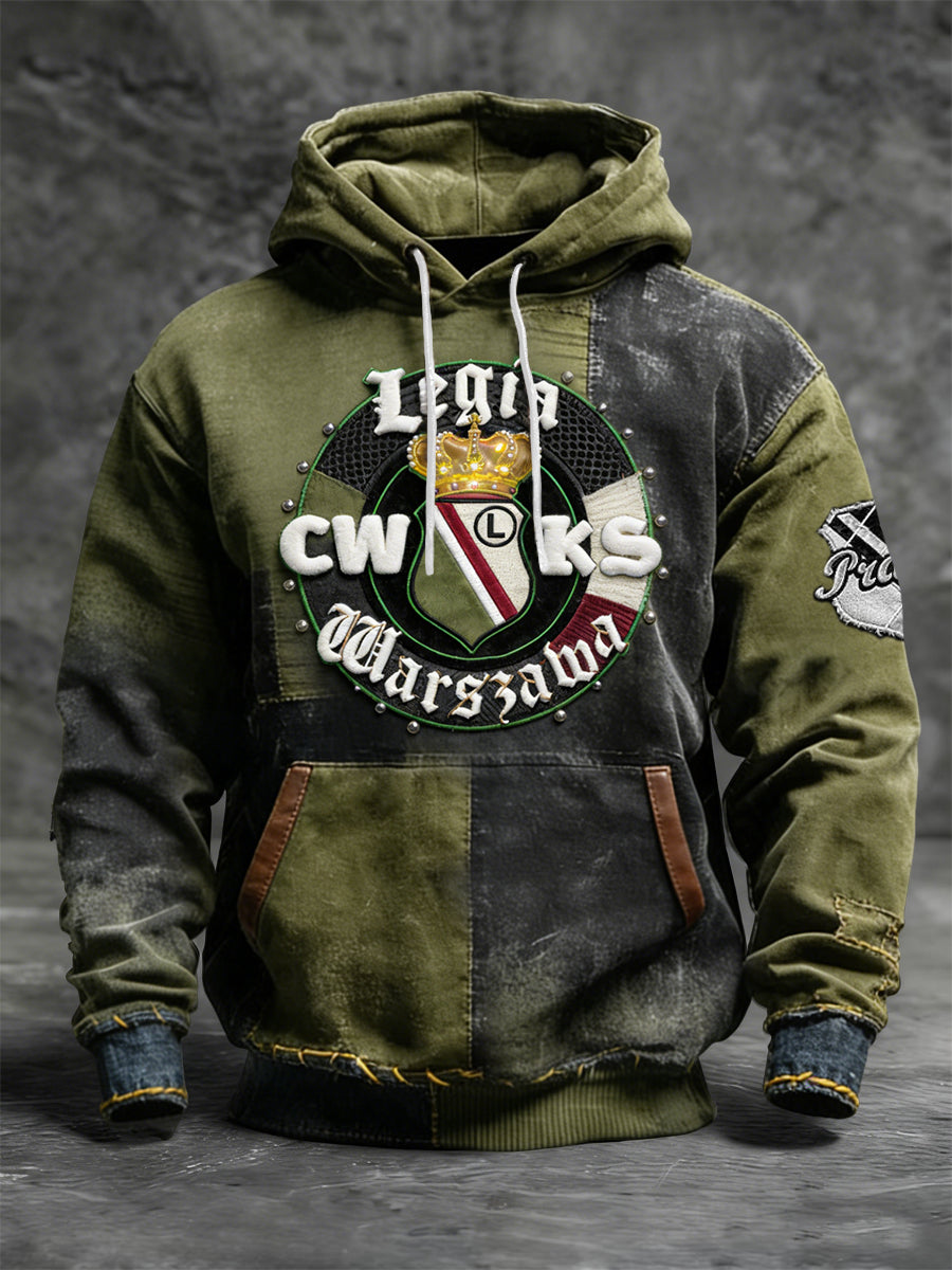 Retro Polska Warszawa Piłka nożna Godło Patchwork Bluza z kapturem