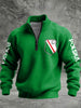 Retro Polski Godło Warszawy Waffle-Knit Pullover z zamkiem błyskawicznym