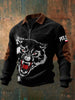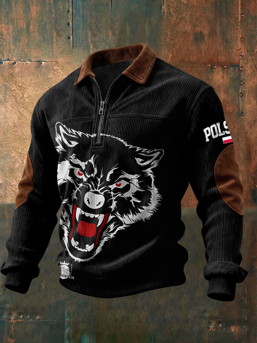 Retro Polski Wolf Patriot Sztruks Zipper Pullover