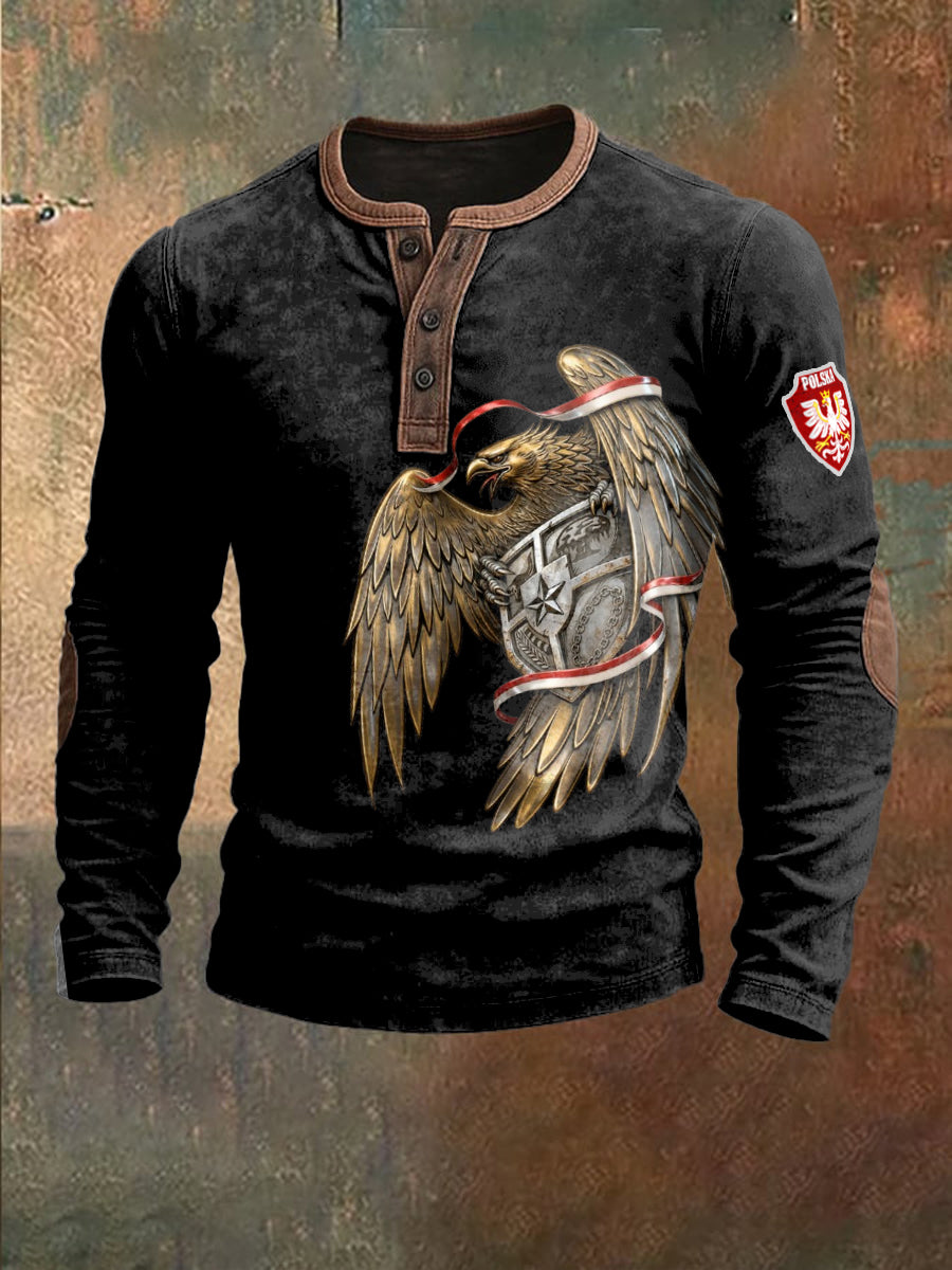 Czarna bluza patchworkowa z nadrukiem męska flaga Polska