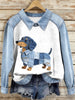 Damska bluza jeansowa patchworkowa z jamnikiem