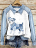 Damska bluza z denimem Patchwork Schnauzer ze wzorem psa