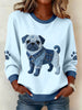Damska bluza z motywem jeansowym z motywem mopsa Patchwork