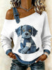 Damska bluza z motywem patchworku dla psa w stylu vintage