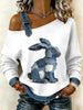Damska bluza z motywem patchworku w stylu vintage z królikiem