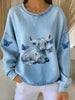 Damska retro słodka bluza z kapturem z motylem Highland Cow jeansowa patchwork Art Print
