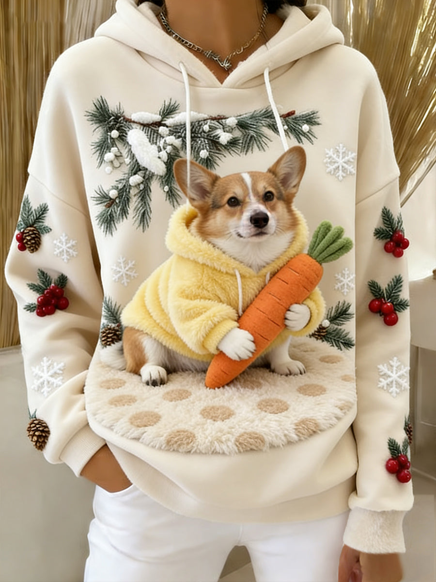 Damska wygodna flanelowa bluza z kapturem Retro Animal Art Print