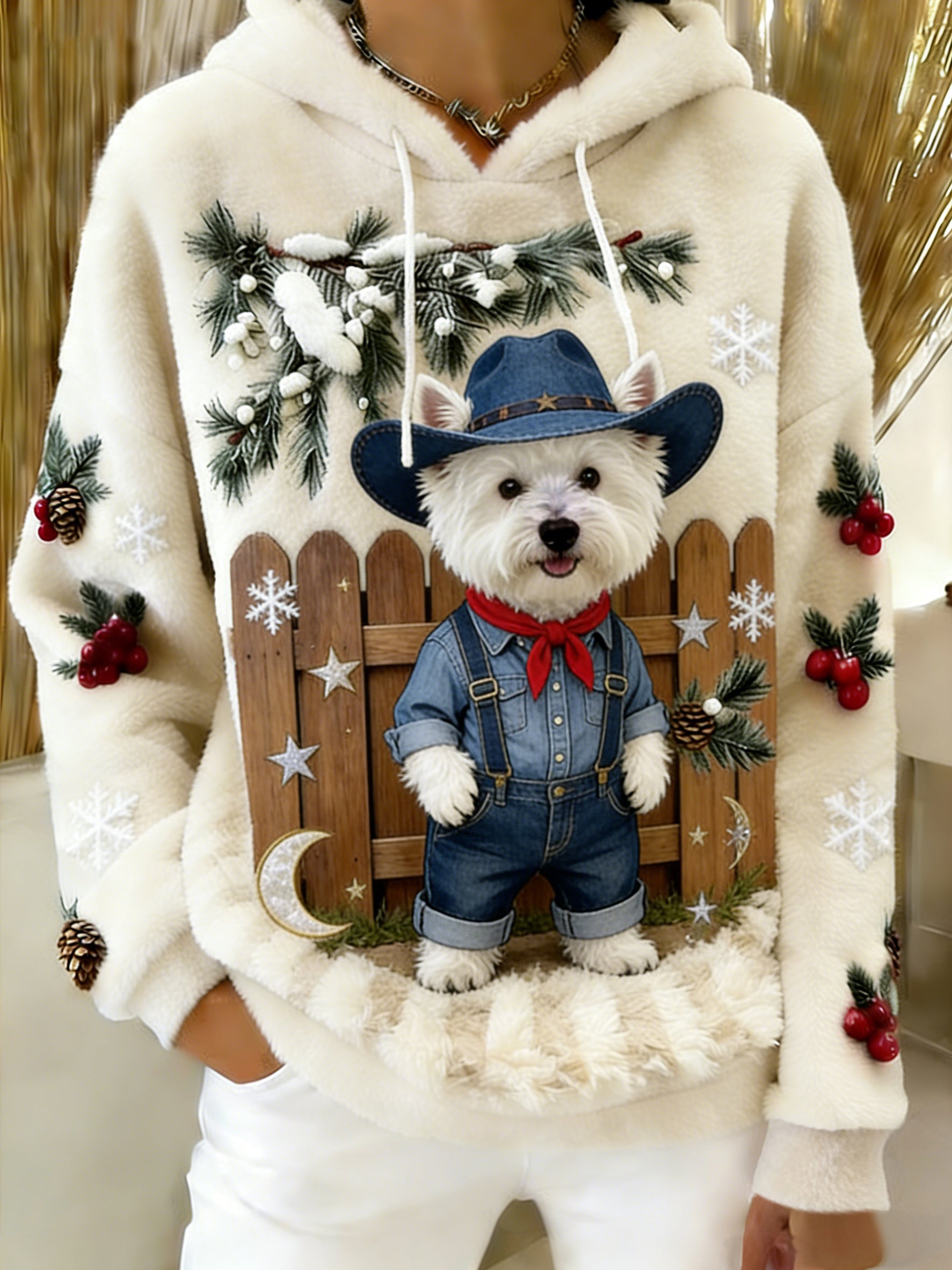 Damska wygodna flanelowa bluza z kapturem Retro Animal Art Print
