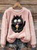 Damska zabawna flanelowa bluza z kapturem Fuzzy Fuzzy Black Cat