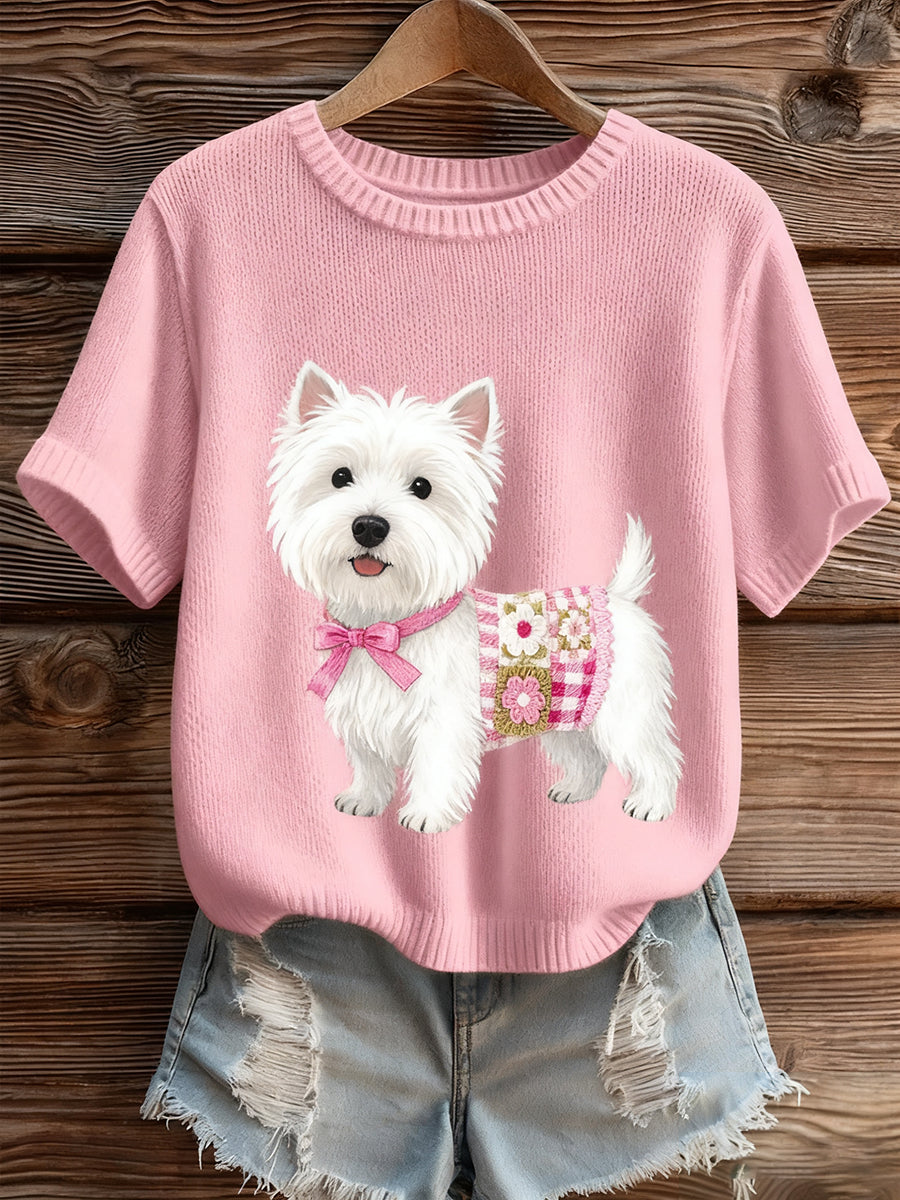 Damski artystyczny nadruk zwierzęcy wygodny top z dzianiny z krótkim rękawem