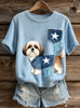 Damski artystyczny nadruk zwierzęcy wygodny top z dzianiny z krótkim rękawem