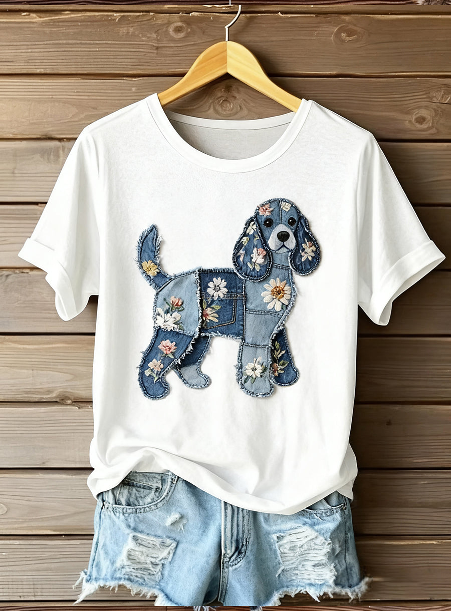 Damski artystyczny top z nadrukiem zwierzęcym Comfort z krótkim rękawem