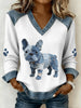 Damski buldog francuski wzór jeansowy patchwork artystyczny top z dekoltem w szpic