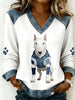 Damski Bull Terrier Denim Patchwork Casual Top z dekoltem w szpic