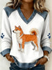 Damski dekolt w stylu retro z dekoltem w serek Patchwork z nadrukiem zwierzęcym, swobodny top komfortowy
