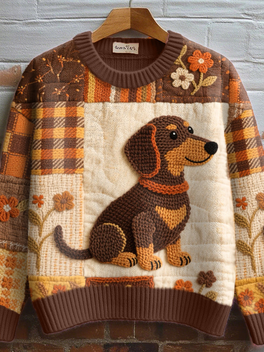 Damski jamnik szydełkowy, przytulny sweter z dzianiny