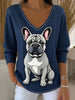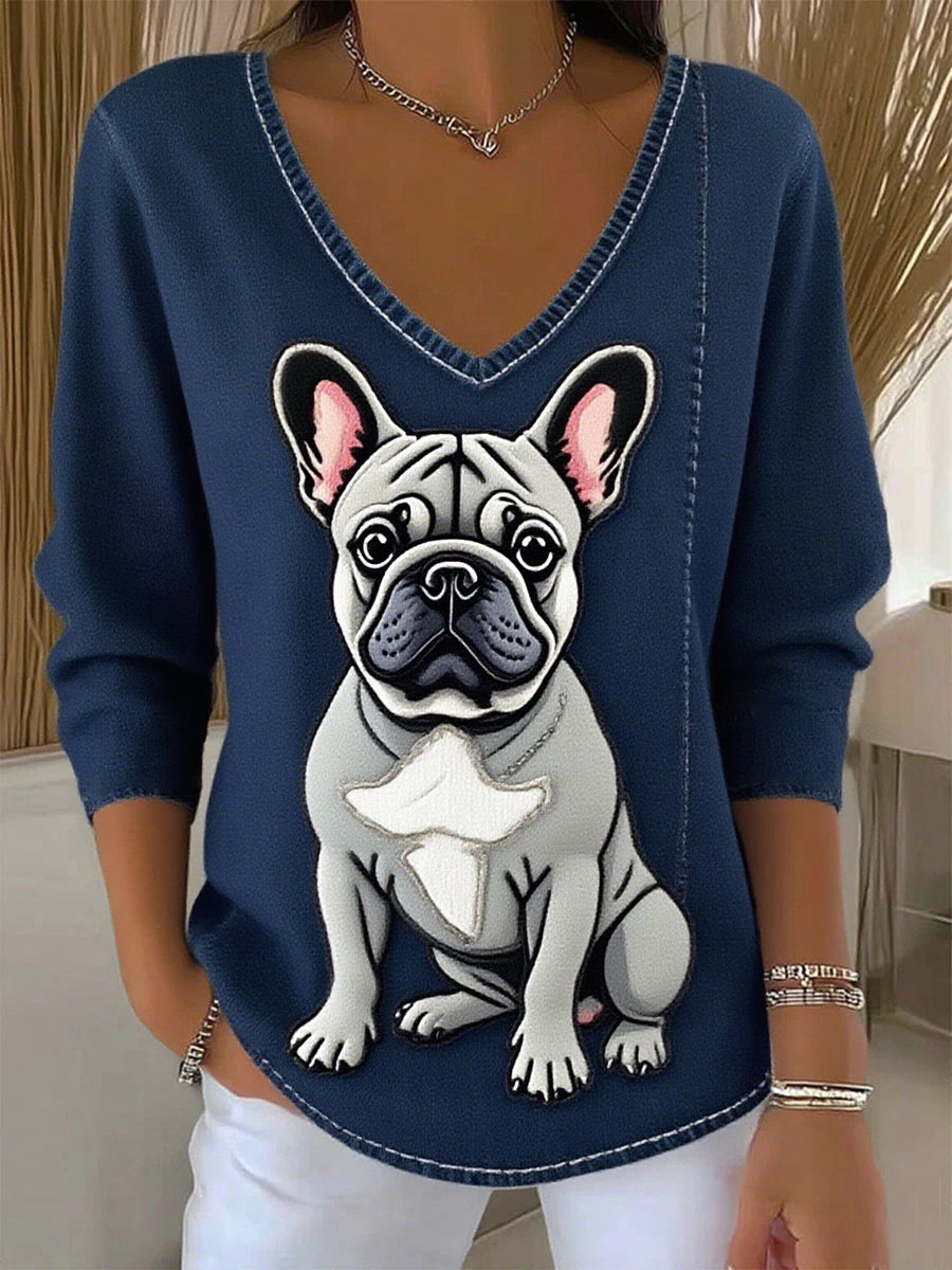 Damski retro zwierzęcy nadruk casualowy top z długim rękawem