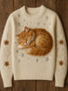 Damski słodki kot artystyczny drukowany na co dzień sweter z dekoltem