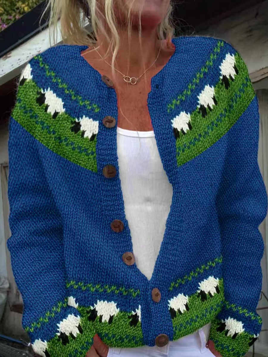 Damski słodki sweter z islandzkim swetrem rozpinany sweter