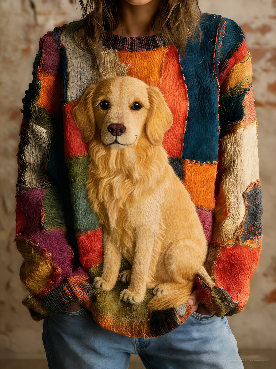 Damski sweter w stylu vintage z nadrukiem zwierzęcym Comfort