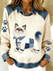 Damski Vintage Denim Patchwork Top z nadrukiem w stylu zwierzęcym, swobodny i wygodny