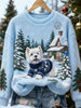 Damskie Retro Animal Boże Narodzenie Art Print Casual Top flanelowy