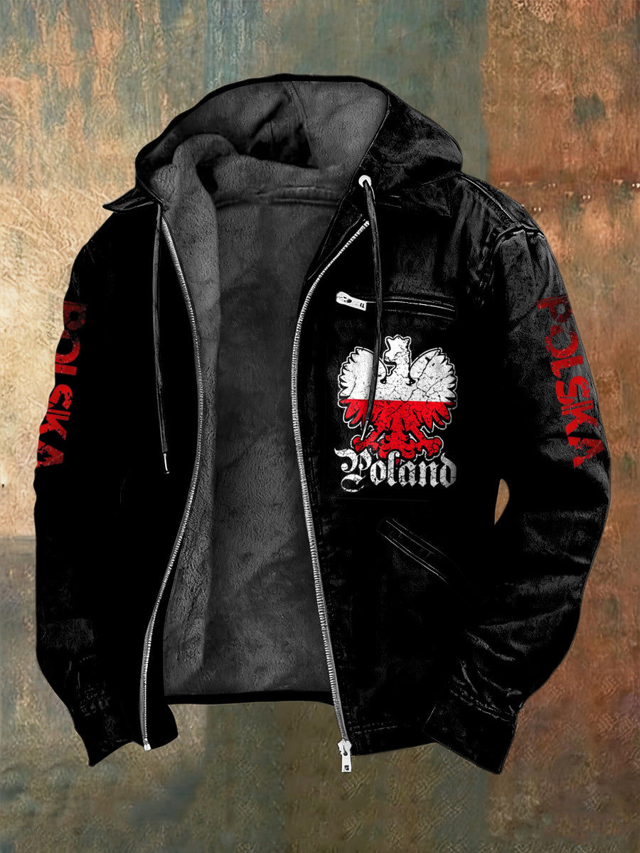 Kurtka z kapturem z polarową podszewką Retro Polski Eagle Flag