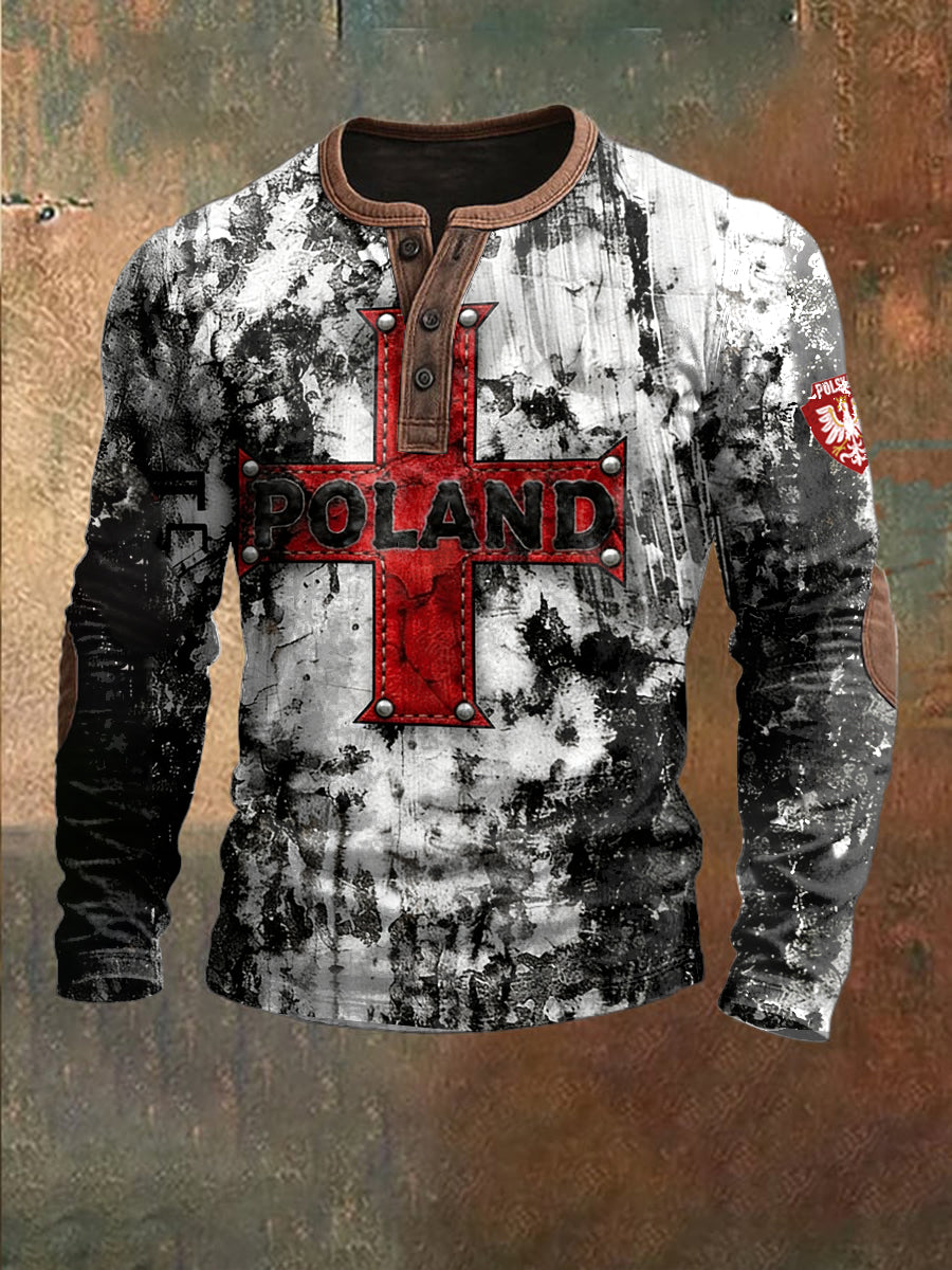 Męska bluza z patchworkiem z nadrukiem polski krzyż