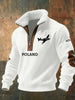 Męska bluza z polarowym kołnierzem z nadrukiem w stylu vintage