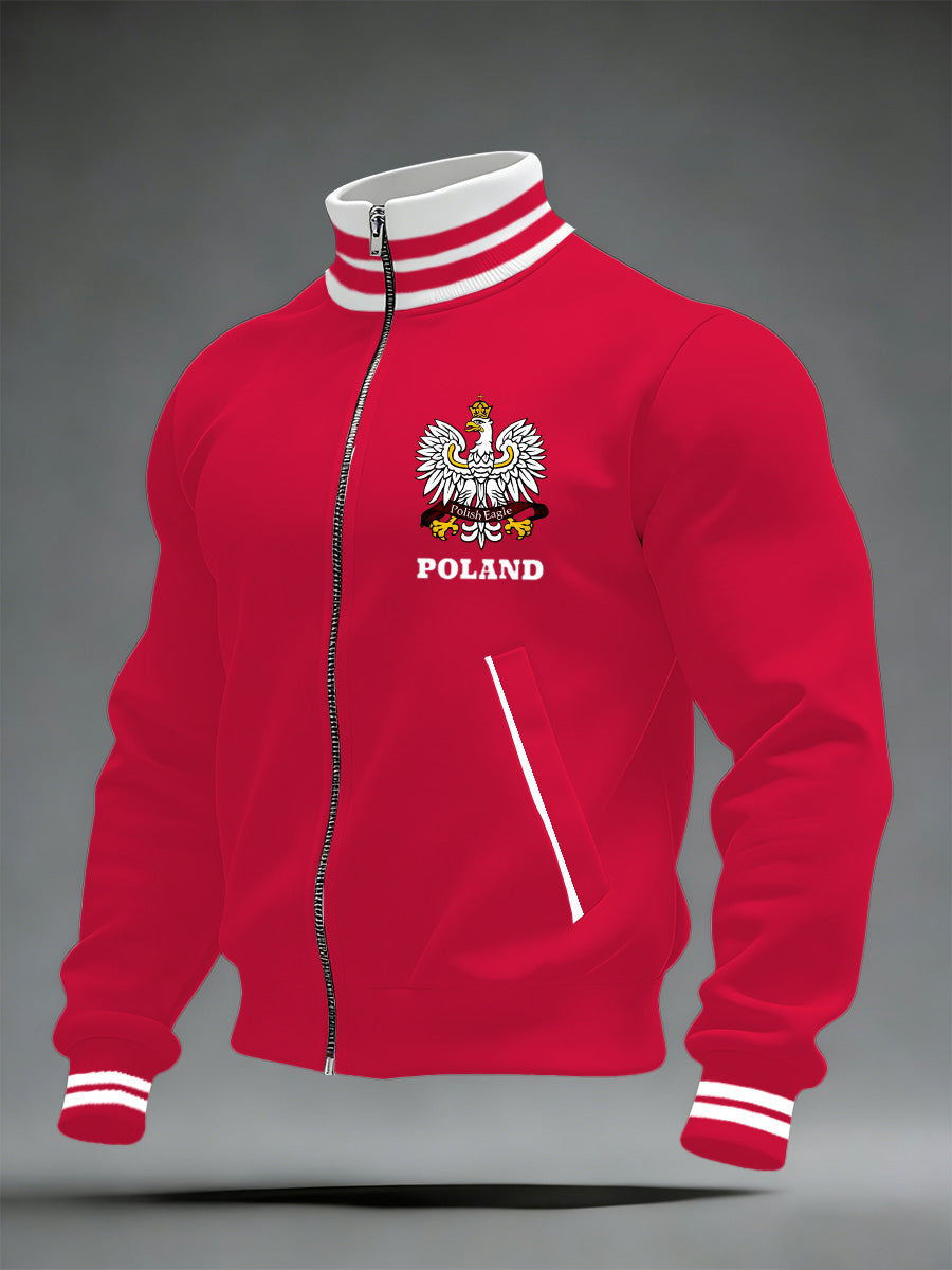Męska kurtka z długim rękawem w kołnierzu z nadrukiem z polską flagą