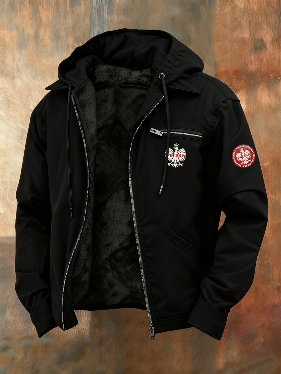 Męska kurtka z kapturem z nadrukiem w stylu vintage