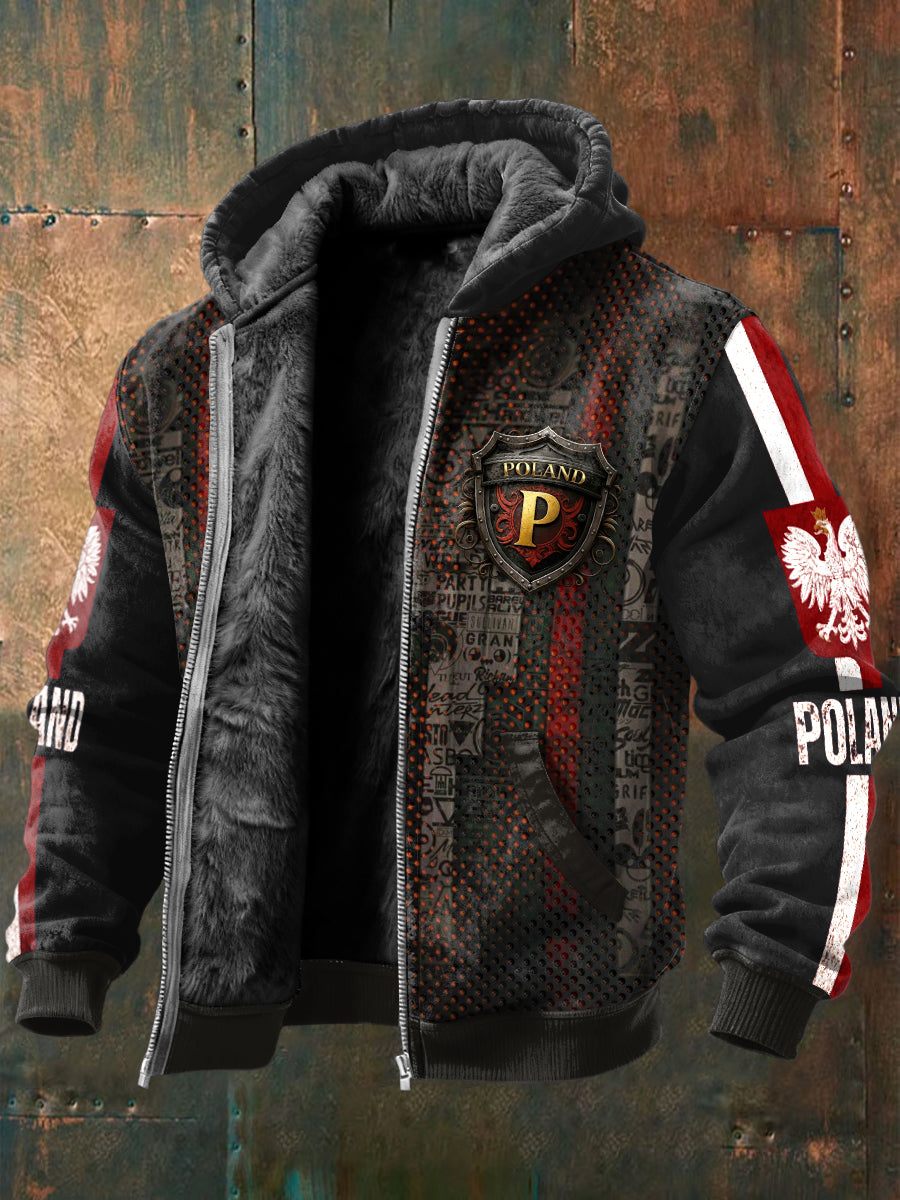 Męska kurtka z nadrukiem patchworkowa z polaru z nadrukiem
