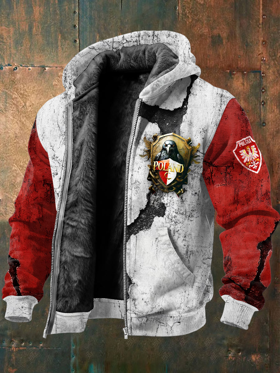 Męska kurtka z polarową podszewką z nadrukiem wrony