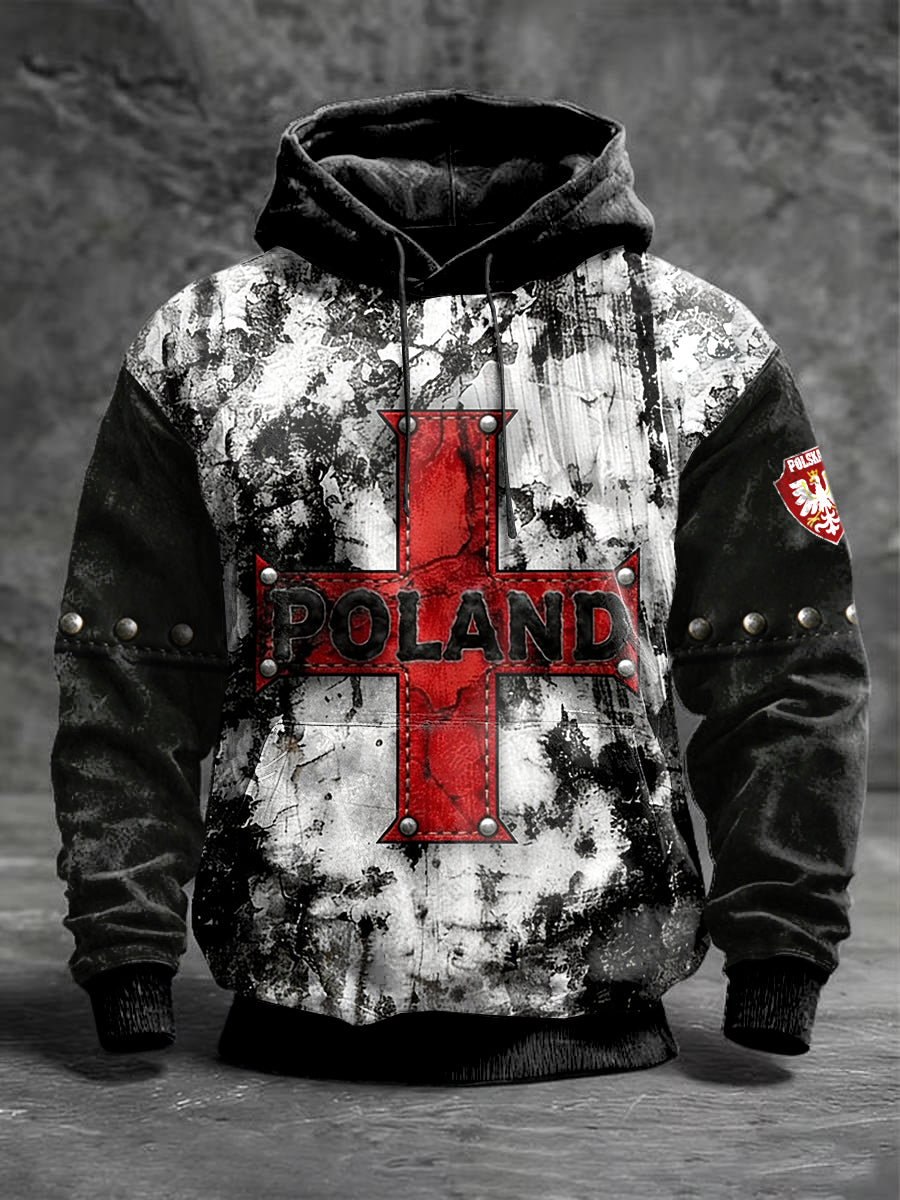 Męska polska bluza z kapturem Patchwork Vintage Cross Print