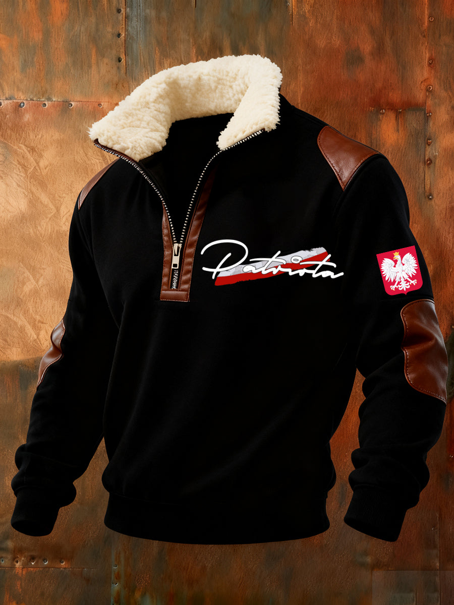 Męska polska sztuka retro casualowa gruba futrzana bluza z kołnierzem