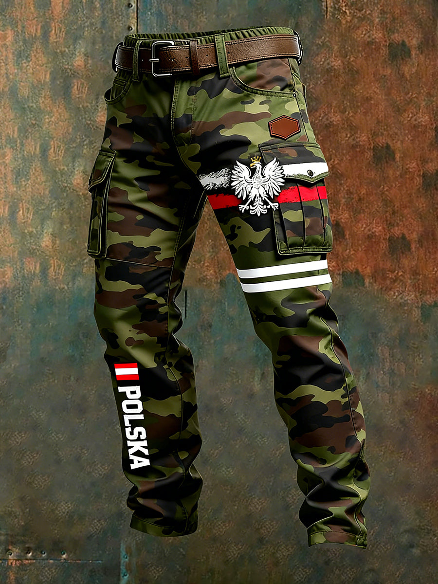Męskie polskie spodnie robocze w stylu retro z nadrukiem artystycznym