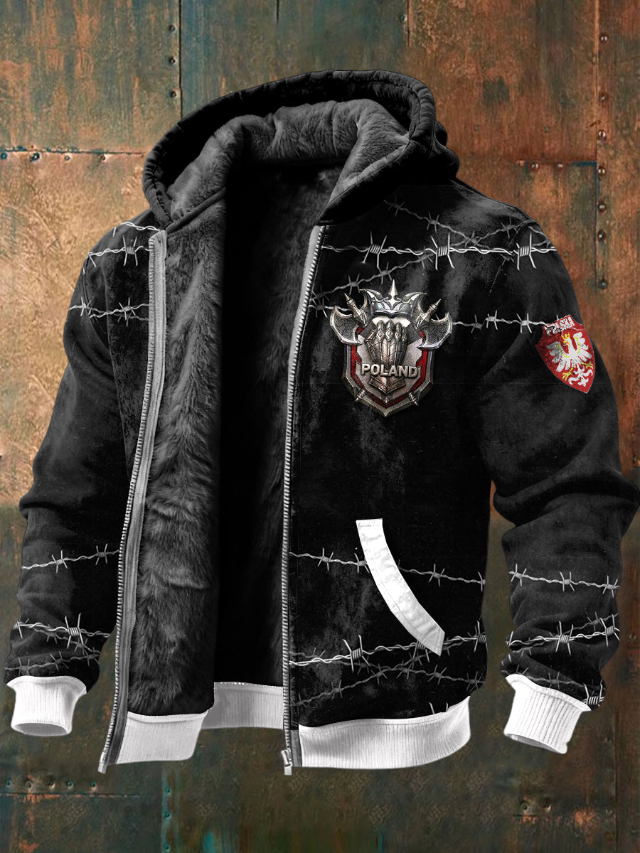 Polska kurtka z polarowym nadrukiem w kolorze czarnym